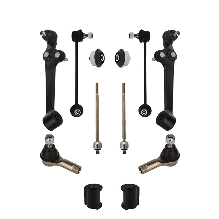 2 عدد طبق کامل ، 2 عدد سیبک (چپقی) فرمان ، 2 عدد میل موجگیر(تعادل) ، 2 عدد بوش تعادل، 2 عدد گوی فرمان و 2 عدد لاستیک چاکدار