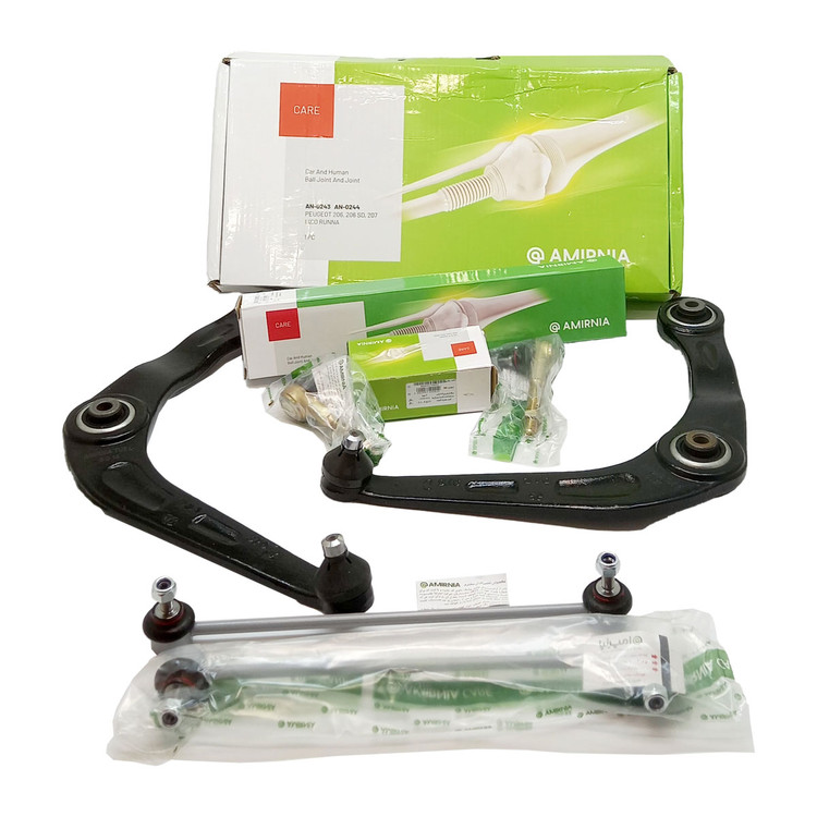 مجموعه شامل: 2 عدد طبق بوش فلزی (چپ و راست) ، 2 عدد سیبک فرمان (چپقی) ، 2 عدد میل موجگیر (تعادل)