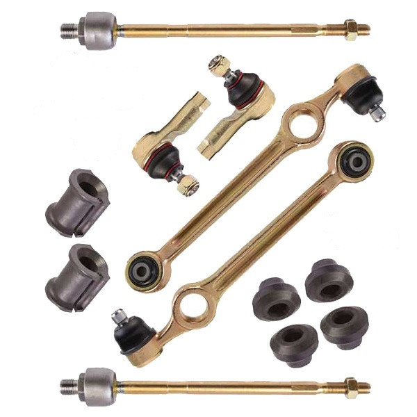 2عدد طبق بوش فلزی ، 2 عدد سیبک (چپقی) فرمان ، 4عدد لاستیک تعادل ، 2 عدد لاستیک چاکدار و 2 عدد گوی (قرقری) فرمان