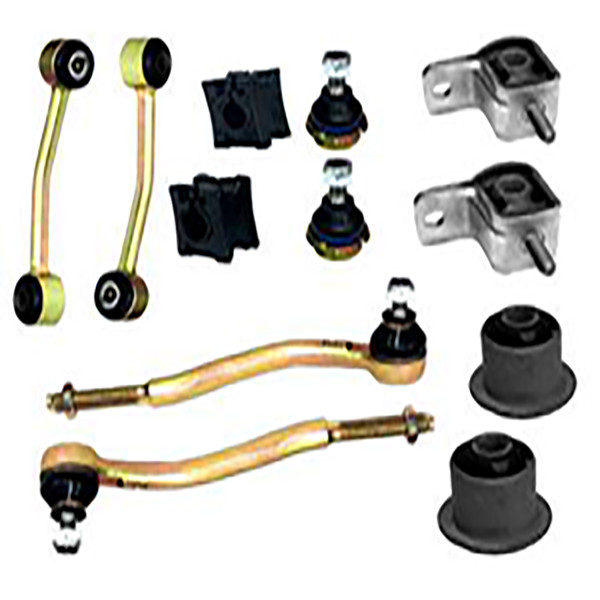 مجموعه شامل: 2 عدد بوش طبق جناقی ، 2 عدد بوش طبق لبه دار ، 2 عدد سیبک (چپقی) فرمان ، 2 عدد میل موجگیر(تعادل) پژویی ، 2 عدد سیبک زیر کمک و 2 عدد لاستیک چاکدار