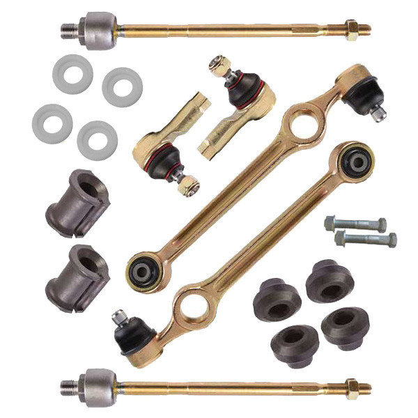 2 عدد طبق بوش لاستیکی ، 2 عدد سیبک (چپقی) فرمان ، 4عدد لاستیک تعادل ، 2 عدد لاستیک چاکدار (موجگیر) ، 2 عدد گوی (قرقری) فرمان و 2 عدد پیچ و مهره طبق